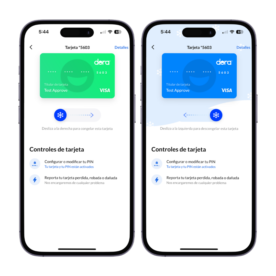 Congela y descongela tu tarjeta de débito en cualquier momento y lugar, directamente desde la aplicación de Dora.